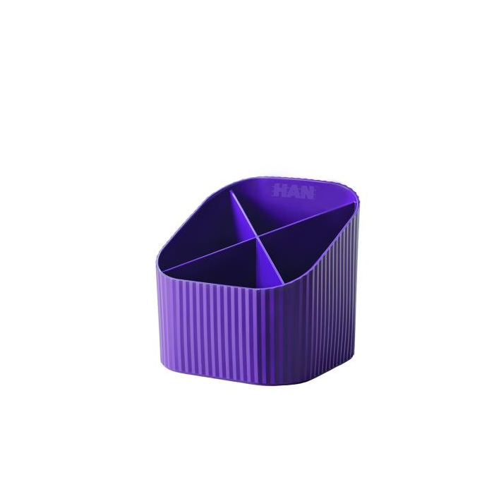 Stojan so 4 priehradkami v modernom dizajne a trendových farbách. Materiál vysokokvalitný PP. Rozmery 111 × 121 × 106 mm. Farba fialová.