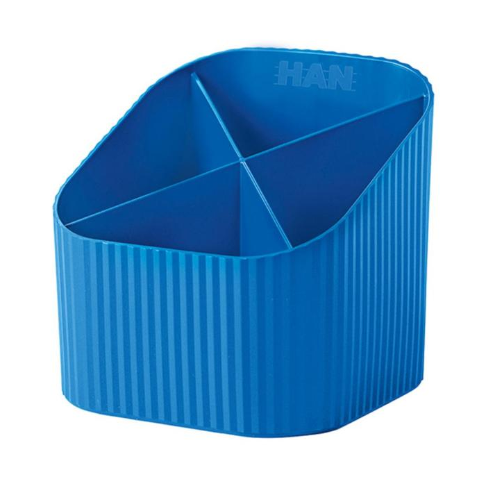 Atraktívny stojan na perá z novej produktovej rady HAN LOOP. Materiál vysokokvalitný PP, extrémne odolný voči prasknutiu. Úprava nepriehľadná, trendové farby. Väčšie balenie 6 ks. Farba modrá.