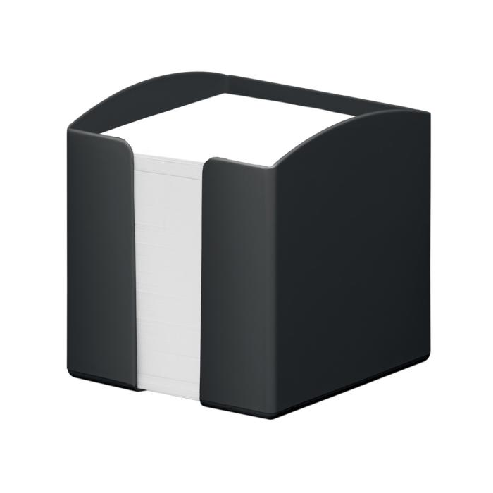 Stojan na poznámkový blok z recyklovaných plastov v kvalite Blue Angel. S 800 lístkami recyklovaného papiera v kvalite Blue Angel, veľkosť 93 x 93 mm. Rozmery: 100 x 105 x 100 mm (Š x V x H). Farba čierna.