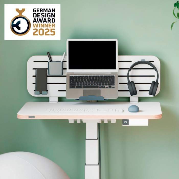 S riešením pre zavesenie tašky a predlžovacieho kábla na zadnej strane Kompatibilný s väčšinou stolov Obsah: Dierovaná doska a príslušenstvo vyrobené z 85 % z recyklovaného plastu: držiak na notebook (vhodný aj pre MacBooky), držiak na pero, držiak na smartfón a háčik