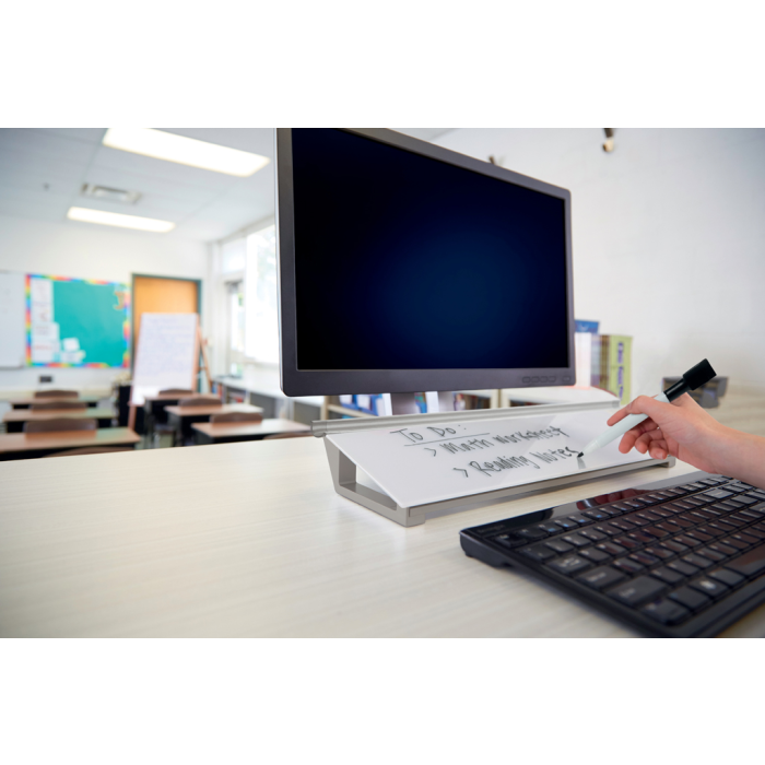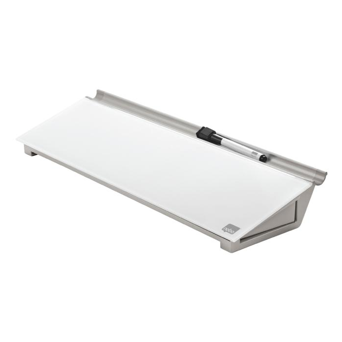 Sklenená stolová podložka je unikátny doplnok na stôl na písanie poznámok a odkazov. Bezrámčekový dizajn a sklenený povrch tabule ponúka najvyššiu odolnosť proti šmuhám od atramentu a škrabancom. Písacia plocha je vždy poruke a písanie poznámok je tak veľmi pohodlné. Výrobok sa perfektne hodí do priestoru za klávesnicou. Skrytý úložný priestor vnútri vám pomôže si udržať čistý pracovný stôl. Dodávané s minipopisovačom Nobo s hubkou na viečku.