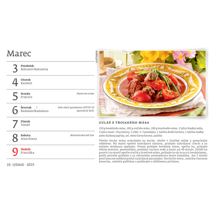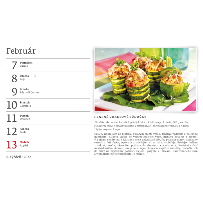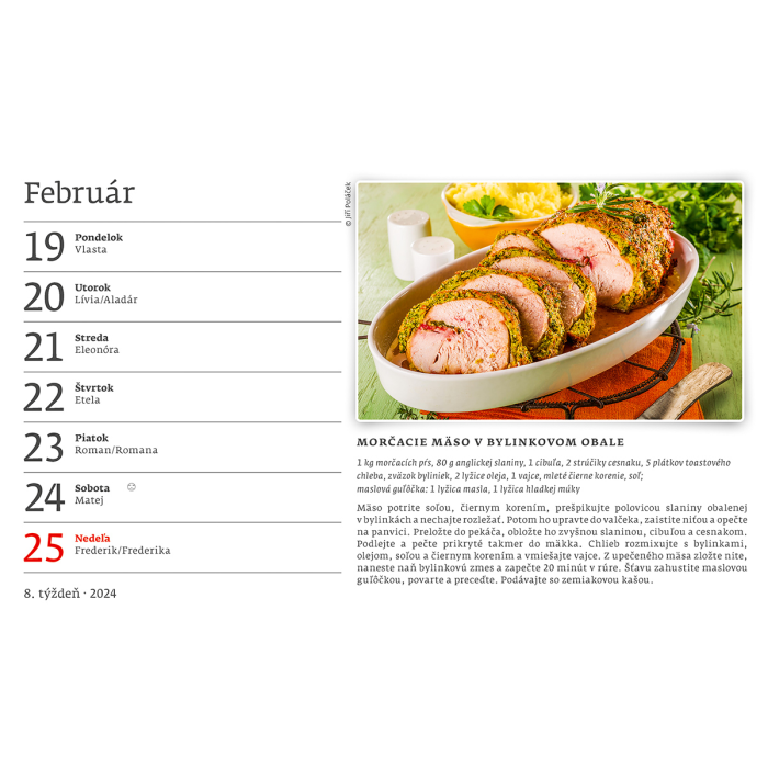 Formát kalendára: 22,6 x 13,9 cm Kalendárium: slovenské týždenné riadkové Počet strán kalendára: 58 + 2 Stojanček: so zámkom Priestor na potlač: 22,6 x 3 cm