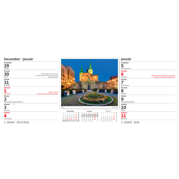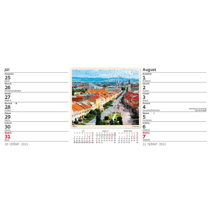 Stolový kalendár riadkový 32,1x13,4 cm - Mestá Slovenska 2026