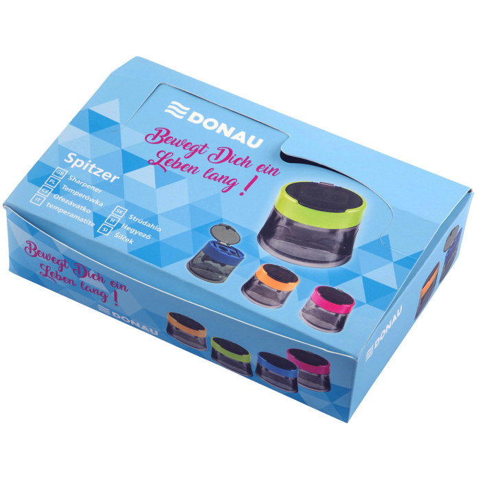 Strúhadlo dvojité s viečkom DONAU transparentné pre pravákov, mix farieb, display 12 ks