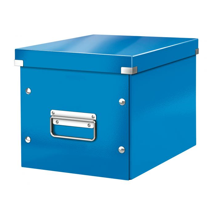 Skladacia archivačná krabica v tvare kocky je ideálna na ukladanie vysokých predmetov alebo vecí oblého tvaru. Veľkostne sa dokonale zmestí do štandardných policových systémov. Vyrobená zo silného kartónu. Laminovaný povrch a kovové prvky na rohoch poskytujú skvelú ochranu, odolné kovové úchyty slúžia na pohodlný prenos. Moderný design, ktorý vyzerá skvelo doma i v kancelárii. Rozmery (š × v × h) 260 × 240 × 260 mm. Farba metalická modrá.