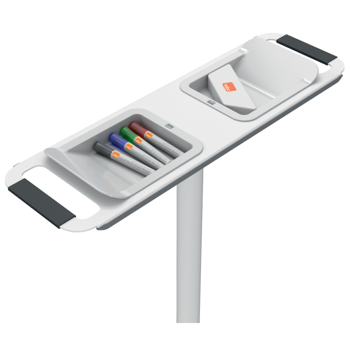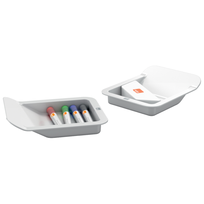 System Move & Meet ponúka maximálnu flexibilitu v akomkoľvek pracovnom prostredí a je ľahko nakonfigurovaný tak, aby dokonale vyhovoval vašim potrebám. Vybavené mobilnou základňou a 2 x odnímateľnými obojstrannými magnetickými tabuľami a 2 x obojstrannými tabuľami/nástenkami bezpečne na svojom mieste. Celkom osem povrchov, ktoré vytvárajú oblasť spolupráce na plánovanie projektov a nápadov. Vďaka modernému a inovatívnemu dizajnu zakrivených rohov s protišmykovým lemom budú dosky doplnkom každého prostredia. Testované podľa DIN EN 14434, certifikované TUV/GS. Kompletné s rozsiahlou súpravou na spoluprácu s viac ako 1 900 položkami. Veľkosť každej dosky 1800 x 900 mm.