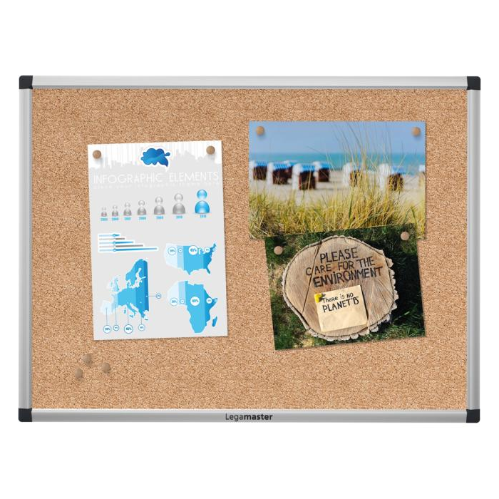 Robustná korková tabuľa na časté používanie. Korok spoľahlivo zakryje prepichnuté otvory. Ekologický povrch vyrobený z materiálu z dobre obhospodarovaných lesov s certifikátom FSC®. Hliníkový rám so sivými plastovými rohovými krytkami. Jednoduchá montáž horizontálne alebo vertikálne. Vrátane montážnej sady a montážneho návodu. Rozmer 100x150 cm.