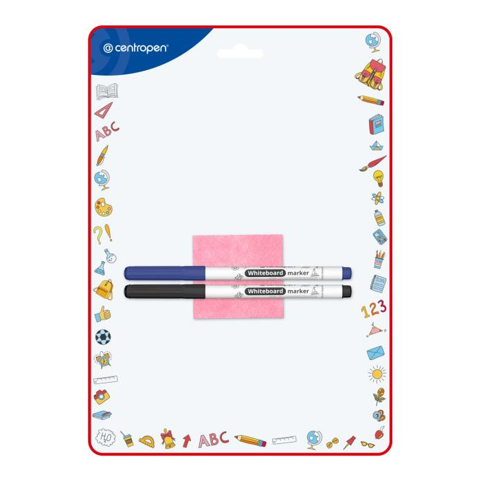 Obojstranne stierateľná tabuľka A4 s vytlačenými linajkami a štvorčekmi. Vhodná na nácvik písania, ale i kreslenia. Súčasťou balenia sú 2 značkovače art. 2507 a textília na zotieranie.