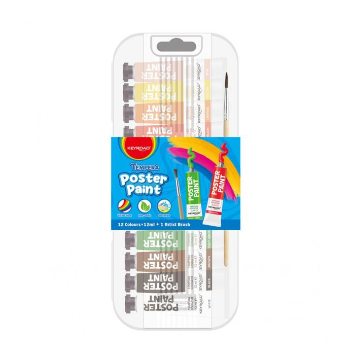 Temperové farby KEYROAD, 12x12ml, v balení so štetcom, mix farieb