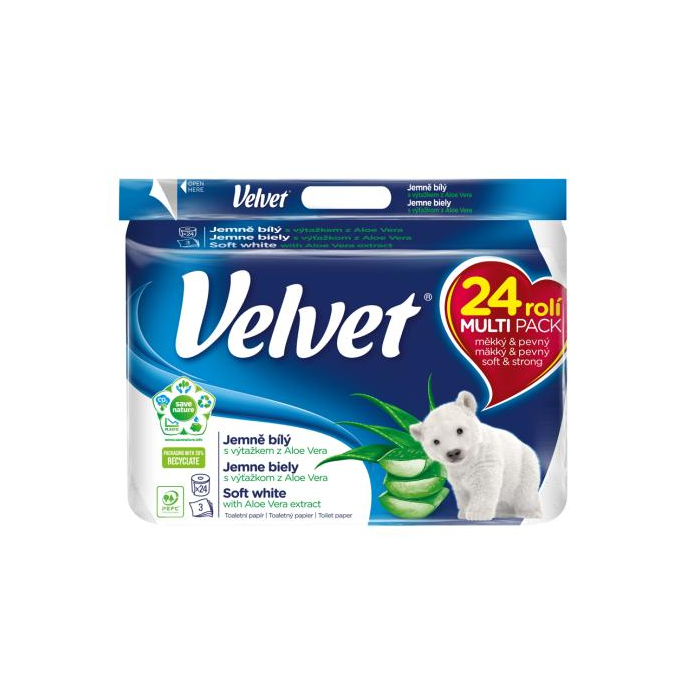 Toaletný papier 3-vrstvový VELVET Aloe Vera 100% celulóza 17m (24ks)