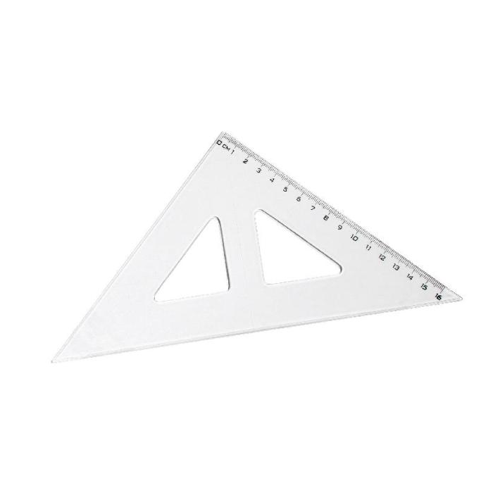 Transparentný pravouhlý trojuholník s kolmicou. Dĺžka 16 cm