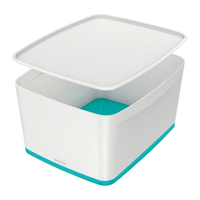 Úložný box s vekom Leitz MyBox, veľkosť L biela/ľadovo modrá