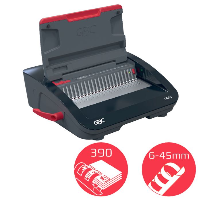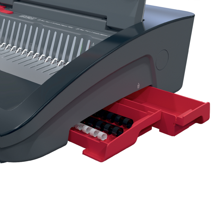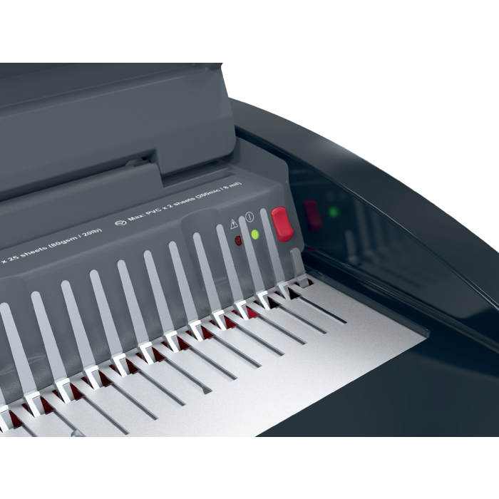 • špičkový elektrický viazač s plastovými chrbtami, navrhnutý pre náročné prostredia ako sú rušné kancelárie a vzdelávacie inštitúcie