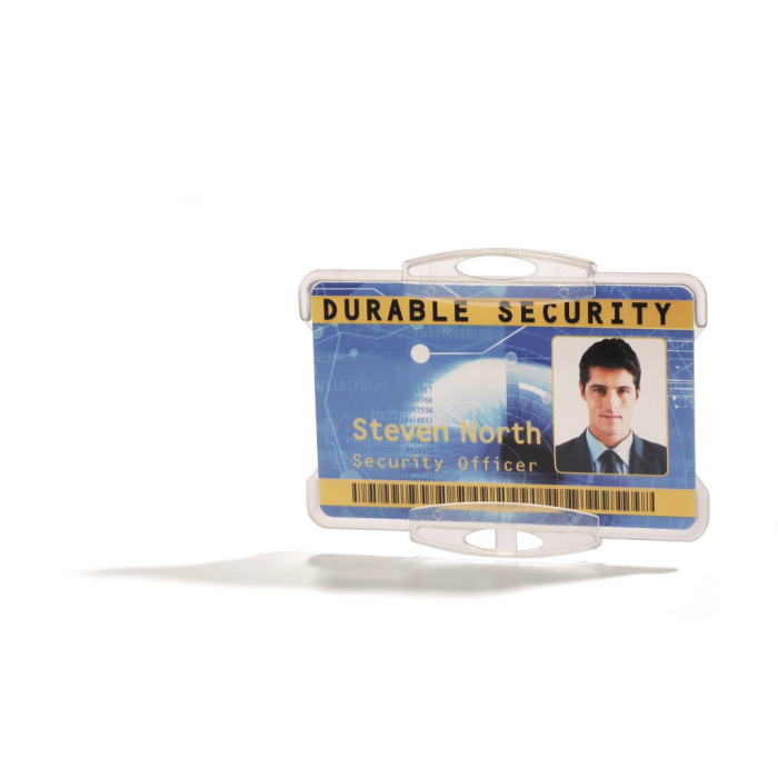 Visačky na jednu plastovú identifikačnú kartu z priehľadného pružného plastu vysokej kvality, z prednej strany otvorené. Vhodné na ochranu magnetických a bezpečnostných kariet pred poškodením. Uchytenie klipu na kratšej alebo dlhšej strane. Visačka vhodná v kombinácii s remienkom, vysúvacím kotúčom alebo štipcom. Balenie 10 ks.