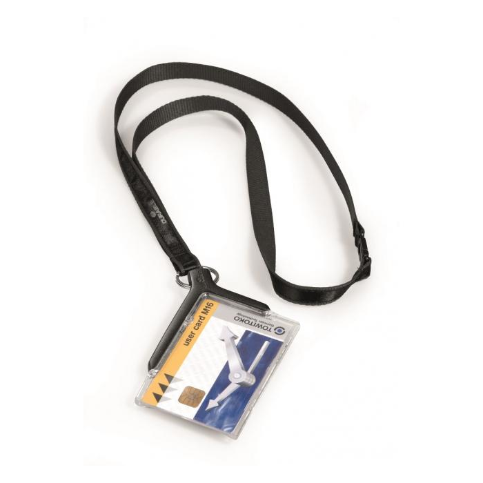 Kombinácia elegancie a bezpečnosti - elegantná, priehľadná akrylová visačka na jednu plastovú kartu, použiteľná horizontálne alebo vertikálne. Dodávaná s čiernym textilným remienkom. Rozmery 85 x 54 mm. V balení 10 ks.