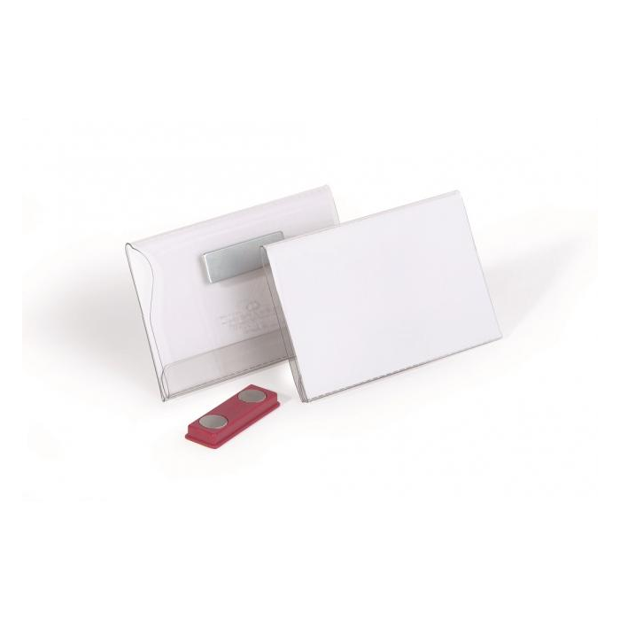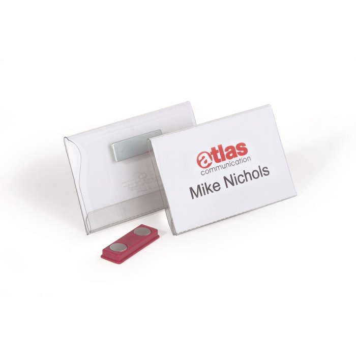 Visačka s magnetickým uchytením. Jednoduché a šetrné upevnenie na najjemnejšie odevy. Malá klopa pre upevnenie na vrecko košele, saka alebo bundy. Vyrobená z tvrdého PVC. Dodávaná s prázdnou bielou kartičkou. Rozmery menovky 90×54 mm. Nevhodná pre ľudí s kardiostimulátorom. V balení 25 ks.
