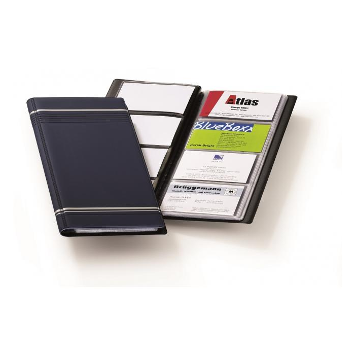 Vizitkár prenosný na 96 vizitiek VISIFIX s prúžkami tmavomodrý