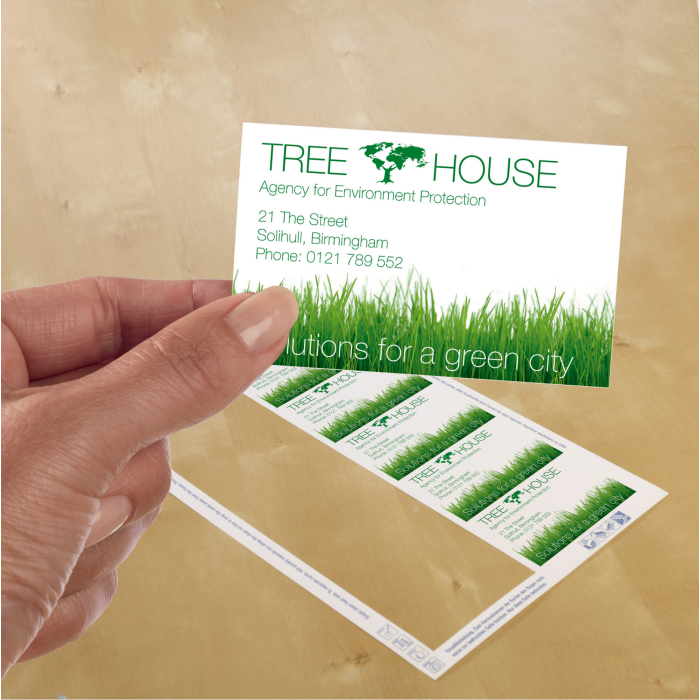 Vizitky s patentovanou technológiou QUICK & CLEAN™ pre ľahké vybratie z hárku. Kvalitný ultra biely papier na potlač 10 vizitiek saténovej úpravy veľkosti 85 × 54 mm z jedného hárku A4. Vhodné do laserových, farebných laserových tlačiarní a kopíriek. Farba ultra biela. Balenie 10 hárkov.