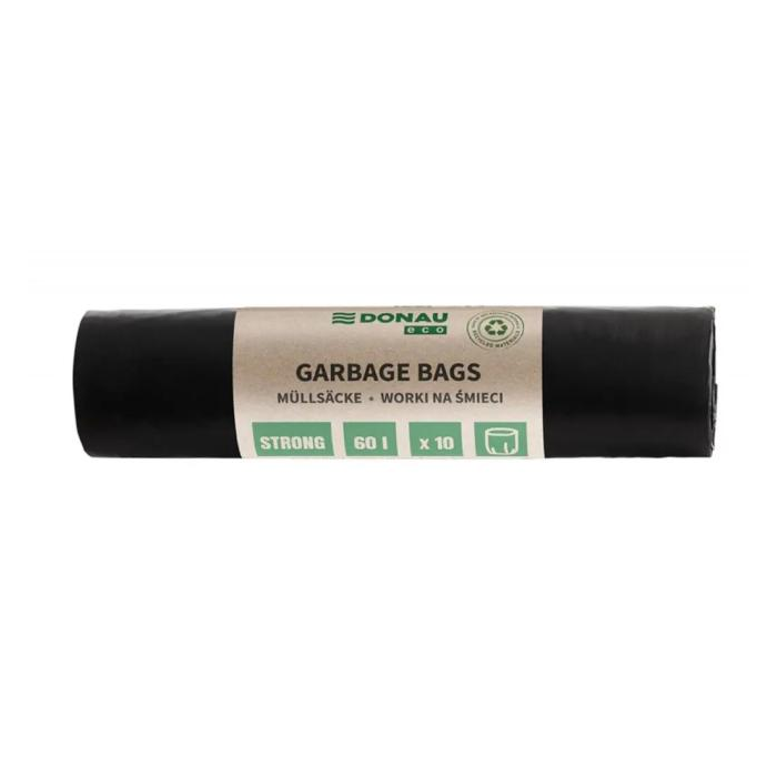 Vrecia DONAU ECO strong, 60 ℓ,30 mic, 10 ks, čierne, LDPE