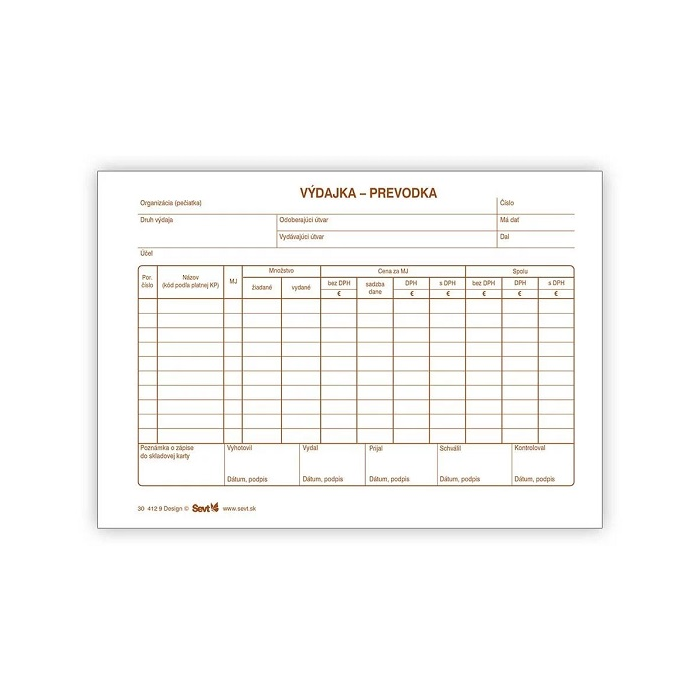 Výdajka - prevodka formátu A5, blok obsahuje 100 listov.