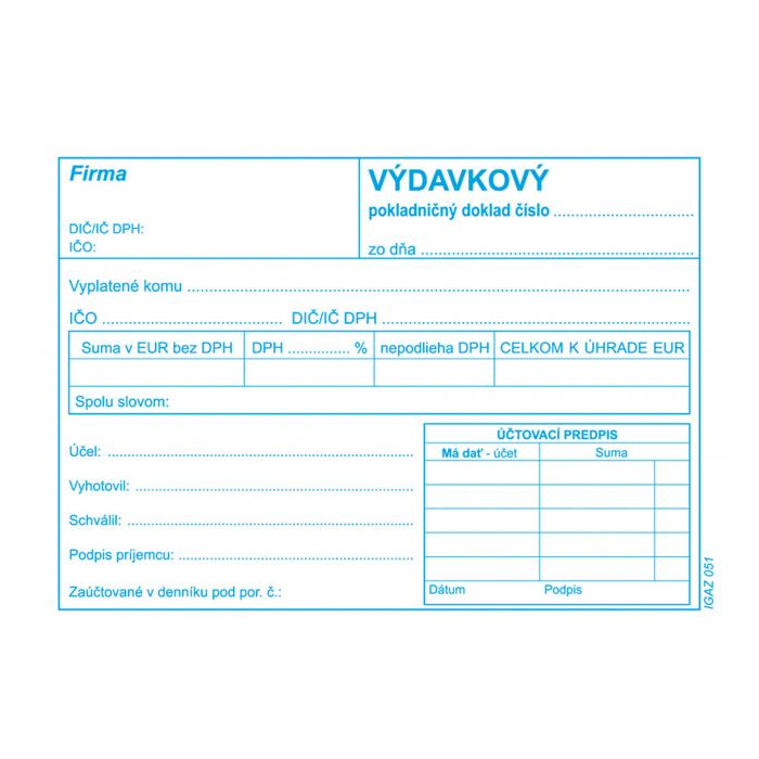 Výdavkový pokladničný doklad s DPH, formát A6, blok 100 listov.