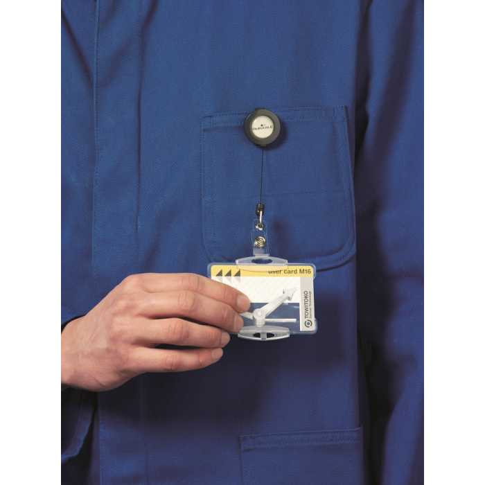 Vysúvací kotúčik s možnosťou vysunutia do 80 cm. Vhodný na uchytenie všetkých visačiek značky Durable s perforáciou. Priemer kotúča 30 mm. Balenie 10 ks. Farba: antracitová