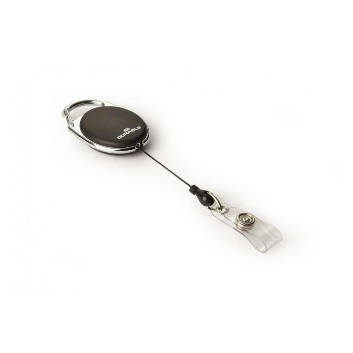 Štýlový oválny vysúvací kotúč s možnosťou vysunutia do 80 cm a kovovým klipom na rubovej strane. Vhodný na uchytenie všetkých visačiek značky DURABLE s perforáciou. Balenie 10 ks. Farba: čierna