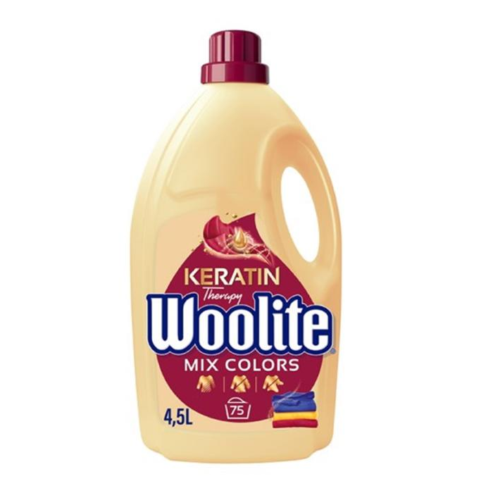 Woolite Extra Color Protection je tekutý prací prostriedok s keratínom určený na farebné oblečenie. Jeho zloženie chráni a oživuje farby. Je výborný pomocník na udržiavanie farebného oblečenia, aby bolo dlhší čas krásne a vyzeralo ako nové. 4,5 litrové balenie vystačí na 75 pracích dávok.
