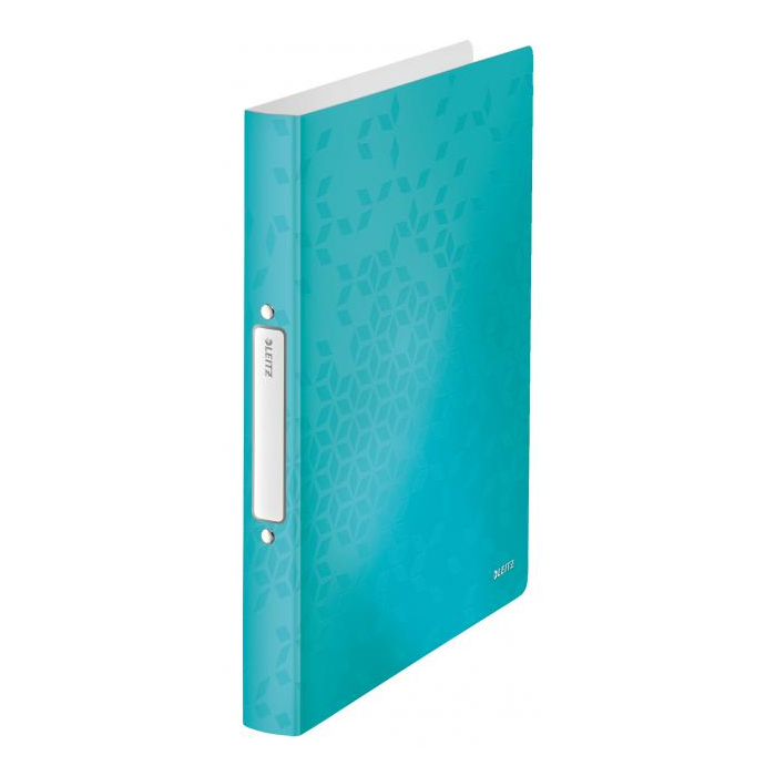 2-krúžkový zakladač v žiarivých farbách WOW s dvojfarebným efektom na prezentácie či archiváciu dokumentov. Vyrobený z dvojvrstvového polypropylénu (PP). Vhodný pre zakladanie perforovaných dokumentov alebo vložených v závesných obaloch. Samolepiaci chrbtový štítok na popis obsahu. Šírka chrbta 25 mm, 2 krúžky. Kapacita: 190 listov A4 (80 g/m²). Farba ľadovo modrá.