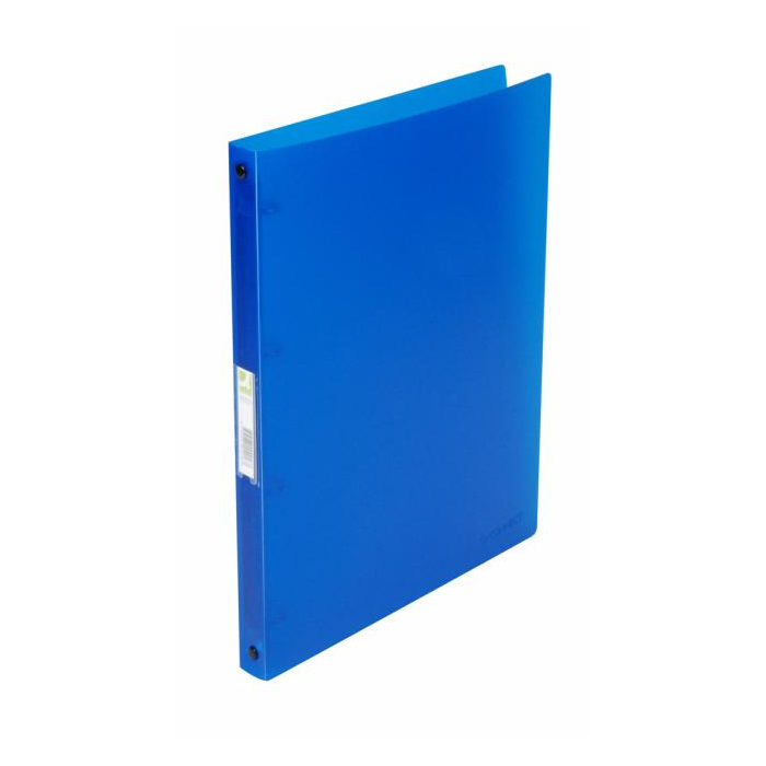 Krúžkový zakladač z polypropylénu. Formát A4. Väčšie balenie 12 ks. Krúžok 16 mm. Chrbát 2 cm. Farba transparentná modrá.