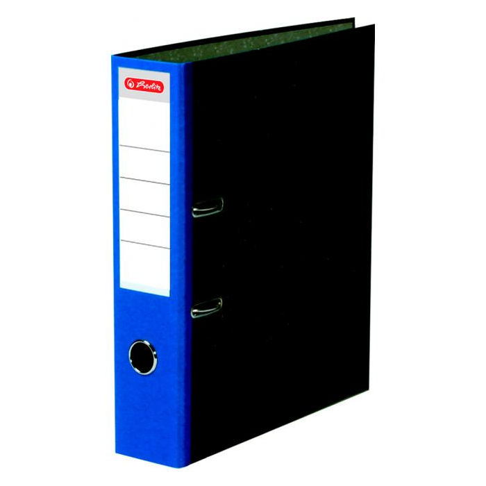 Pákový zakladač mramorový, formát A4. Šírka chrbta 8cm. Bočná strana modrá so štítkom. Otvor na zadnej strane a radokrúžok pre lepšiu manipuláciu, kovová lišta. Farba modrá.