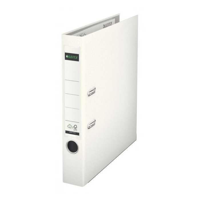 Patentovaný pákový celoplastový zakladač formátu A4 vyrobený z kvalitného kartónu. Vonkajšia strana potiahnutá farebnou polypropylénovou fóliou, vnútorná svetlosivou fóliou. Zakladač je vybavený vysokokvalitnou mechanikou Leitz, chrbtovým krúžkom, kovovou lištou a vymeniteľným papierovým štítkom na popis. Vysokokvalitná mechanika umožňuje o 50 % širšie otvorenie zakladača než dovoľuje bežná páková mechanika, čo znamená až 20 % úspory času pri manipulácii a archivácii dokumentov. Šírka chrbta 5,2 cm. Väčšie balenie 10 ks. Farba biela.