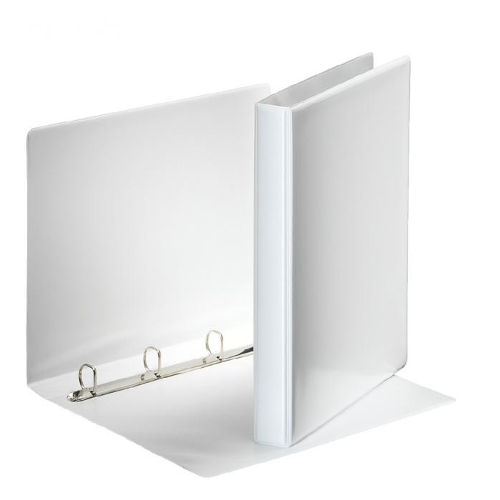 4-krúžkový celoplastový zakladač A4 s predným a chrbtovým priehľadným vreckom a D-krúžkom. Väčšie balenie 10 ks. Chrbát: 3,8 cm Kapacita: 130 listov Farba: biela