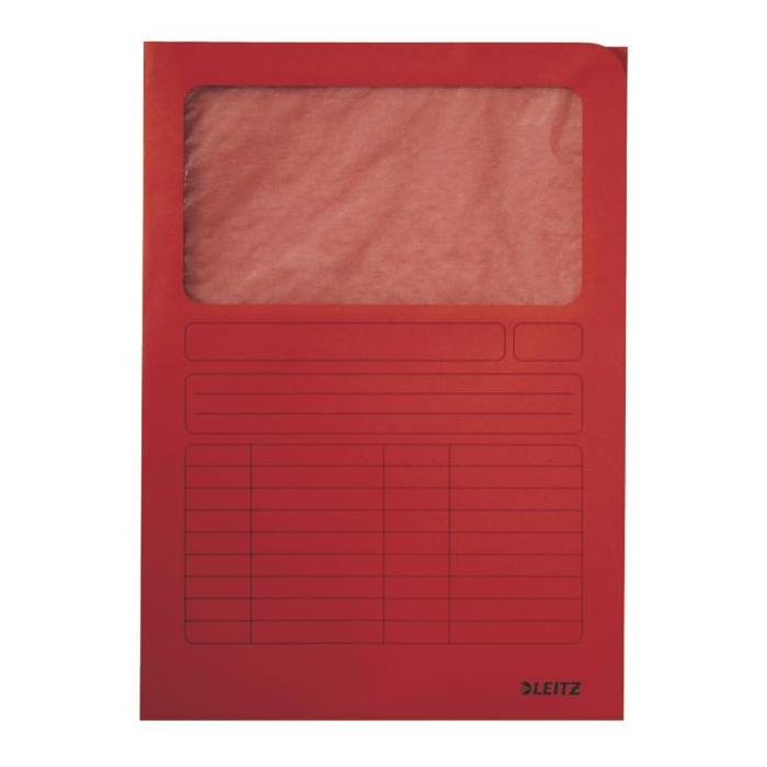 Praktické zakladacie zložky otvorené zhora a z pravej strany formátu 220×310 mm s oknom z fólie. Vyrobené zo 100% recyklovaného papiera Manilla gramáže 160 g. Farba: červená