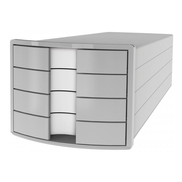 Box so štyrmi zatvorenými zásuvkami v tvare počítačového monitora.Rozmery (š × v × h) 294 × 235 × 368 mm. Farba boxu/zásuvky: sivá/sivá Rozmery: 294x235x368 mm