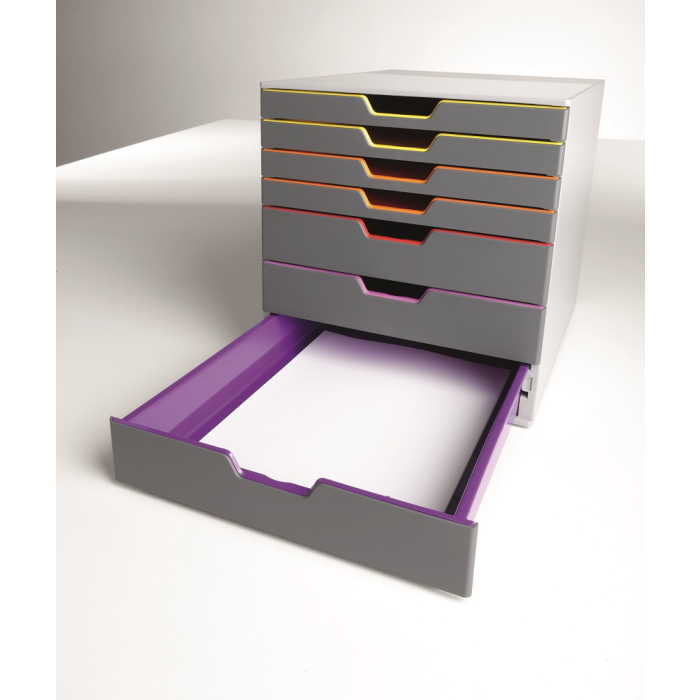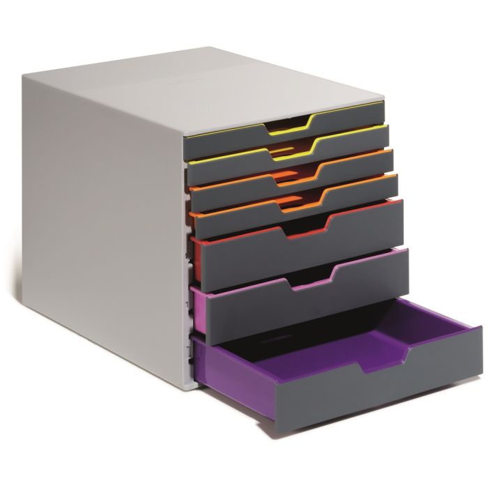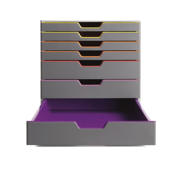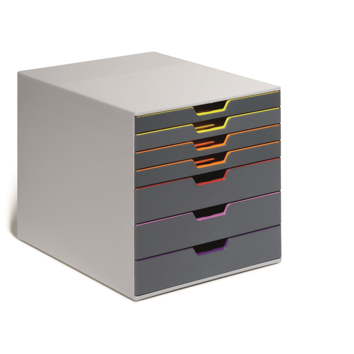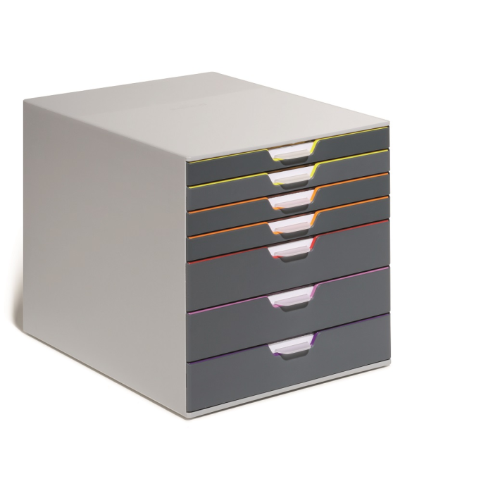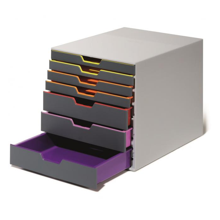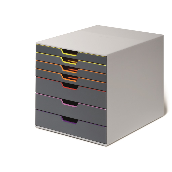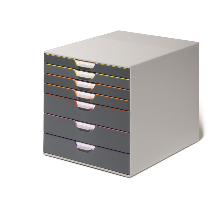 Boxy so 7 zásuvkami s vnútrami dúhových farieb dodajú kancelárii nádych elegancie. Pri ich zatvorení farebné línie iba jemne vystupujú z elegantnej sivej farby, pri otvorení sú žiarivé farby dúhy potešením pre oči. Dodávané s priehľadnými plastovými indexami na označenie obsahu. Boxy sú stohovateľné, zásuvky zabezpečené proti vypadnutiu. Materiál najkvalitnejší ABS plast, tichý a ľahký posun zásuviek, spodná strana s protišmykovou ochranou. Víťaz Product design award 2013. Rozmery (š × v × h) 292 × 280 × 356 mm.