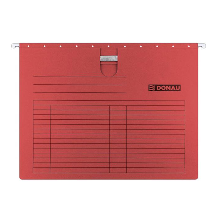 Závesný obal na zakladanie dierovaných dokumentov do formátu A4 s výrezom pre palec na jednoduchšie uchopenie. Pevne zachytený chrbát rýchloviazača umožňuje zakladanie jednotlivých spisov, kovové závesné háčiky garantujú dlhodobé používanie. Súčasťou obalu je plastový index. Farba: červená Balenie: 25 ks