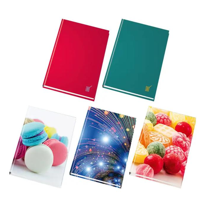 Záznamová kniha s bezdrevným papierom v pevnej väzbe s lesklou lamináciou.