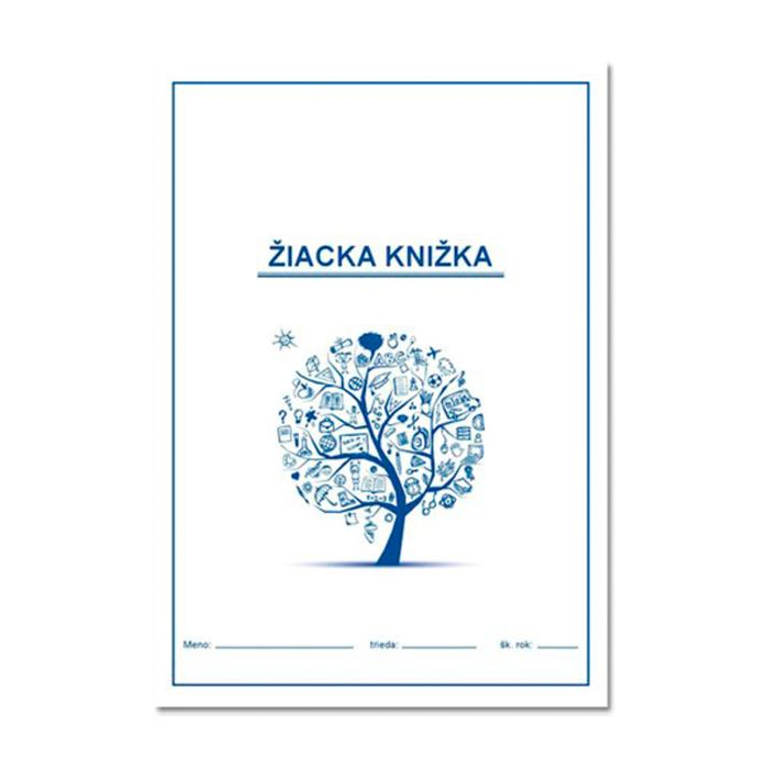 Žiačka knižka pre základné školy formátu A5. 8 listov so špeciálnou potlačou pre základné údaje o žiakovi, na evidenciu predmetov, známok, oznámenia, ospravedlnenia. Obálka s 2-farebnou potlačou a rozvrhom hodín, na zadnej strane vybrané slová.