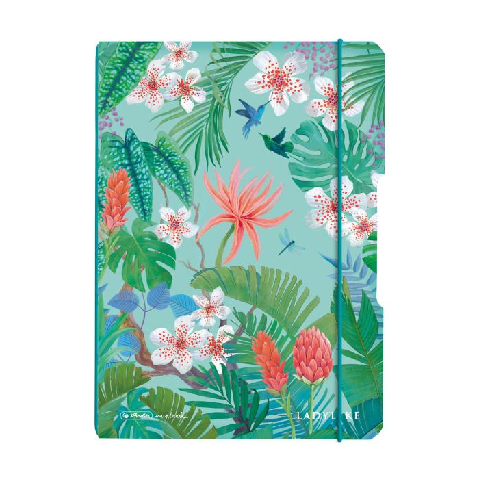 Zošit my.book flex A5, zatváranie na gumičku, zaoblené rohy. Motív Ladylike Jungle.