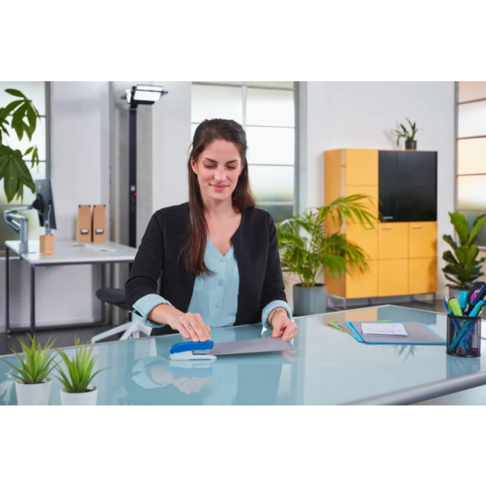 Praktická a ľahká zošívačka kancelárska zošívačka novej kolekcie Evolution s plastovým vrchným dielom a integrovanou kovovou rozošívačkou na zadnej časti. Kapacita náplne 100 spiniek veľkosti  10. Kapacita zošitia 15 listov papiera. Možnosť využitia kancelárských zošívačiek Novus sa nazýva spinkovanie. Konce spiniek sa neohýbajú, ale sa kolmo zapustia do podložky.